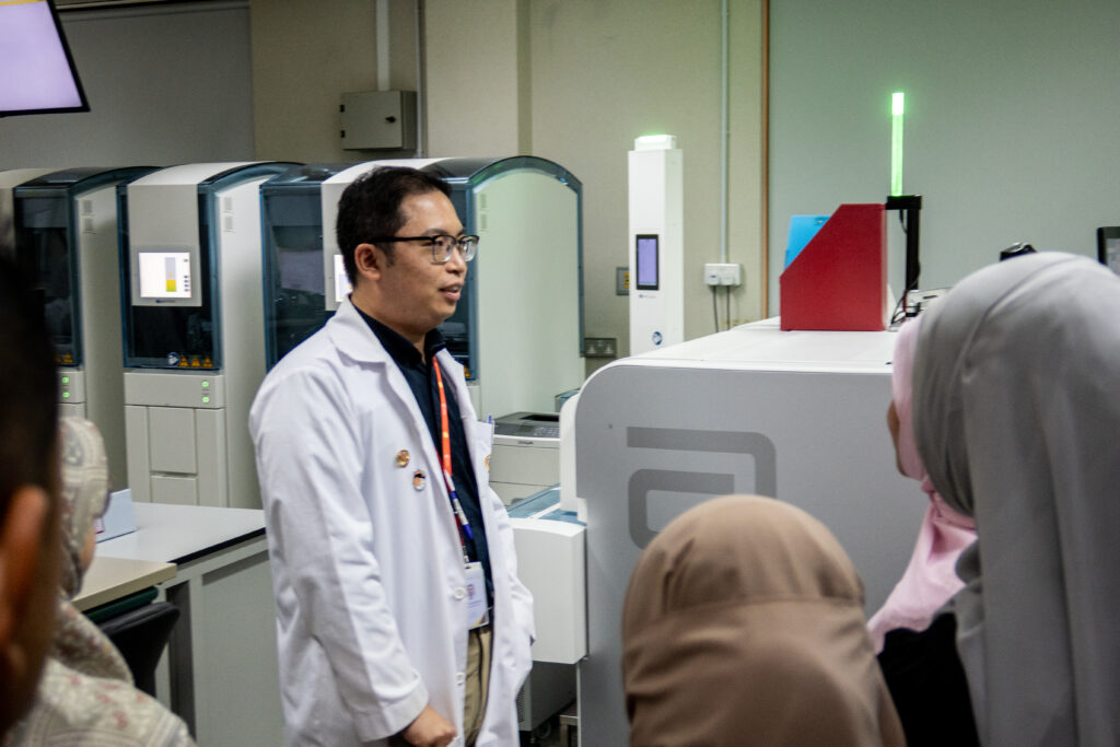 The students were welcomed by JPMC’s Public Relations team and accompanied by Deputy Director of Nursing, Matron Hajah Salbiah binti Hj Daud, together with representatives from several departments. Their programme included visits to the Laboratory Department, Executive Ward, Outpatient Department, Pharmacy Department, and Obstetrics & Gynecology Ward, where they observed how multidisciplinary teams collaborate to deliver patient care and uphold clinical standards.